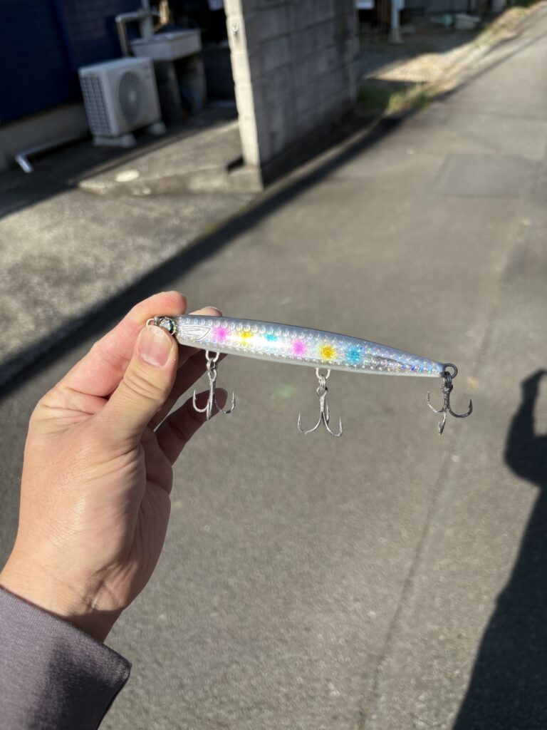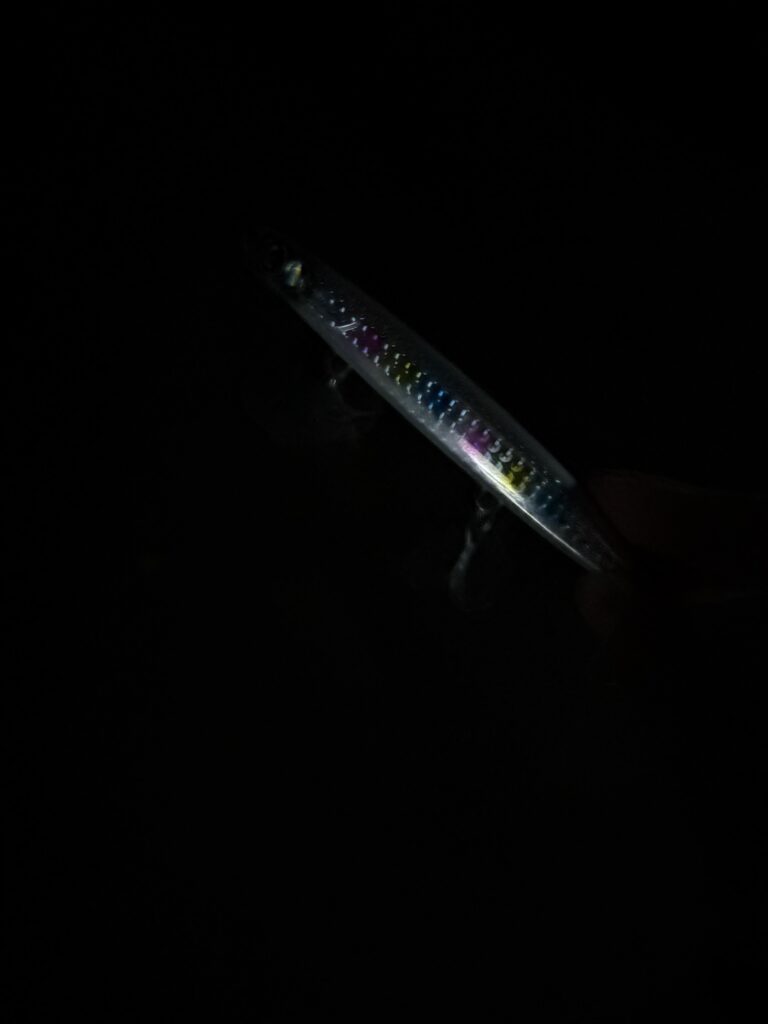 レンズキャンディグローベリーは万能カラーです。日中、マヅメ時、夜間でもオールマイティに活躍します。迷ったらまずこのカラーを購入することをおすすめします。また、潮色が悪いときや夜間の光量が低いときにレンズホログラムによって膨張効果もあるため遠くまで反射が届き、集魚効果を発揮します。タックルBOXに必ず1本は入れておきたいアイテムです。