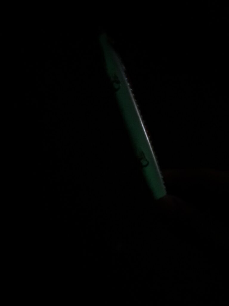 満月の夜や外灯周りで光量があるシュチュエーションではシルバーベースのレンズキャンディグローベリーは視認性もよく、ピンク・黄色・青の三色がよく目立ちます。レンズホログラムが反射してまるで魚のうろこのように見えます。またレンズホログラムの特徴に膨張効果もあるため「ボワっとした」輝きで艶めかしいイメージがします。
